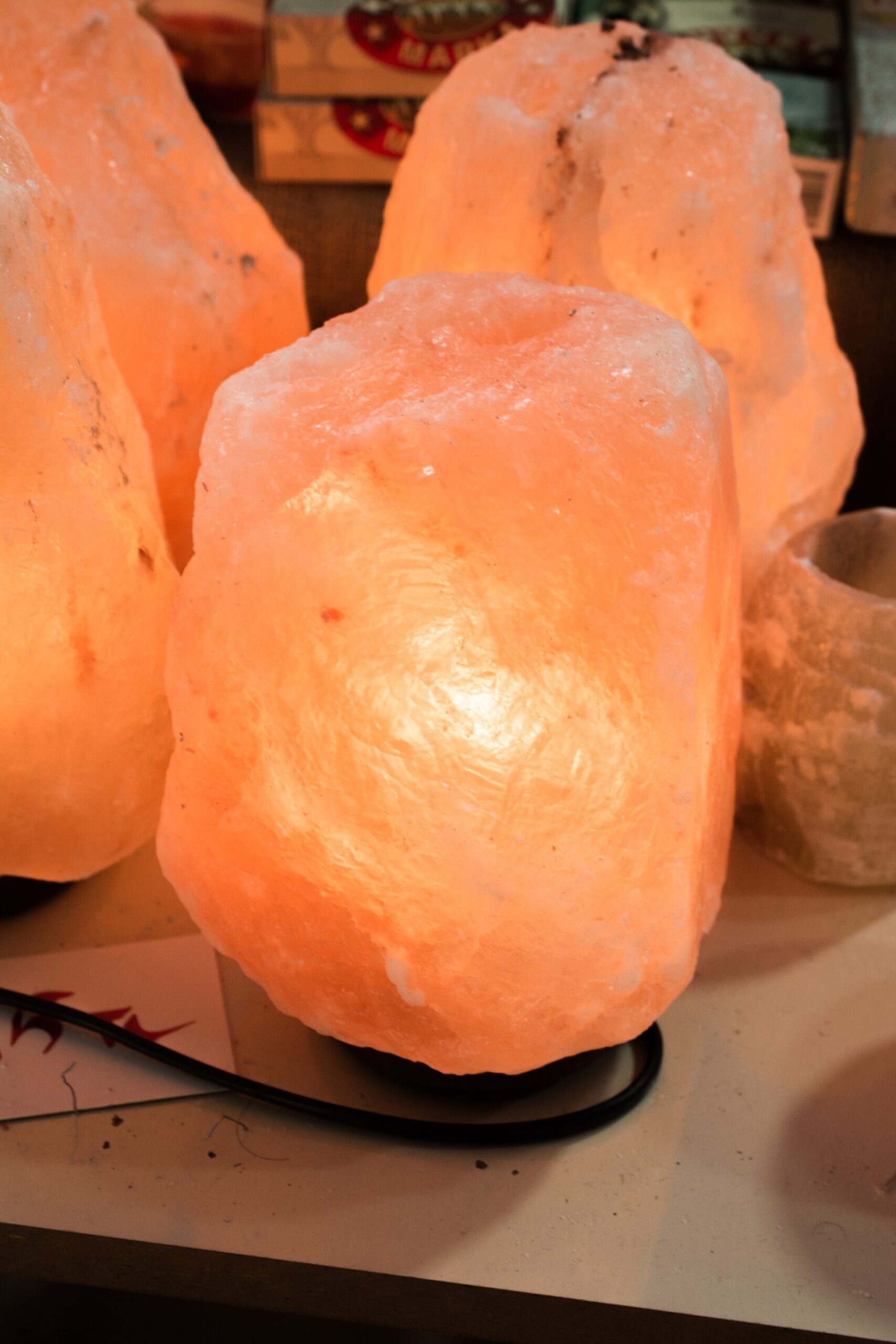Himalayan salt lamps are made from large blocks of pink salt with a light inside. They are popular for their warm glow and decorative look in homes, offices, and wellness spaces.